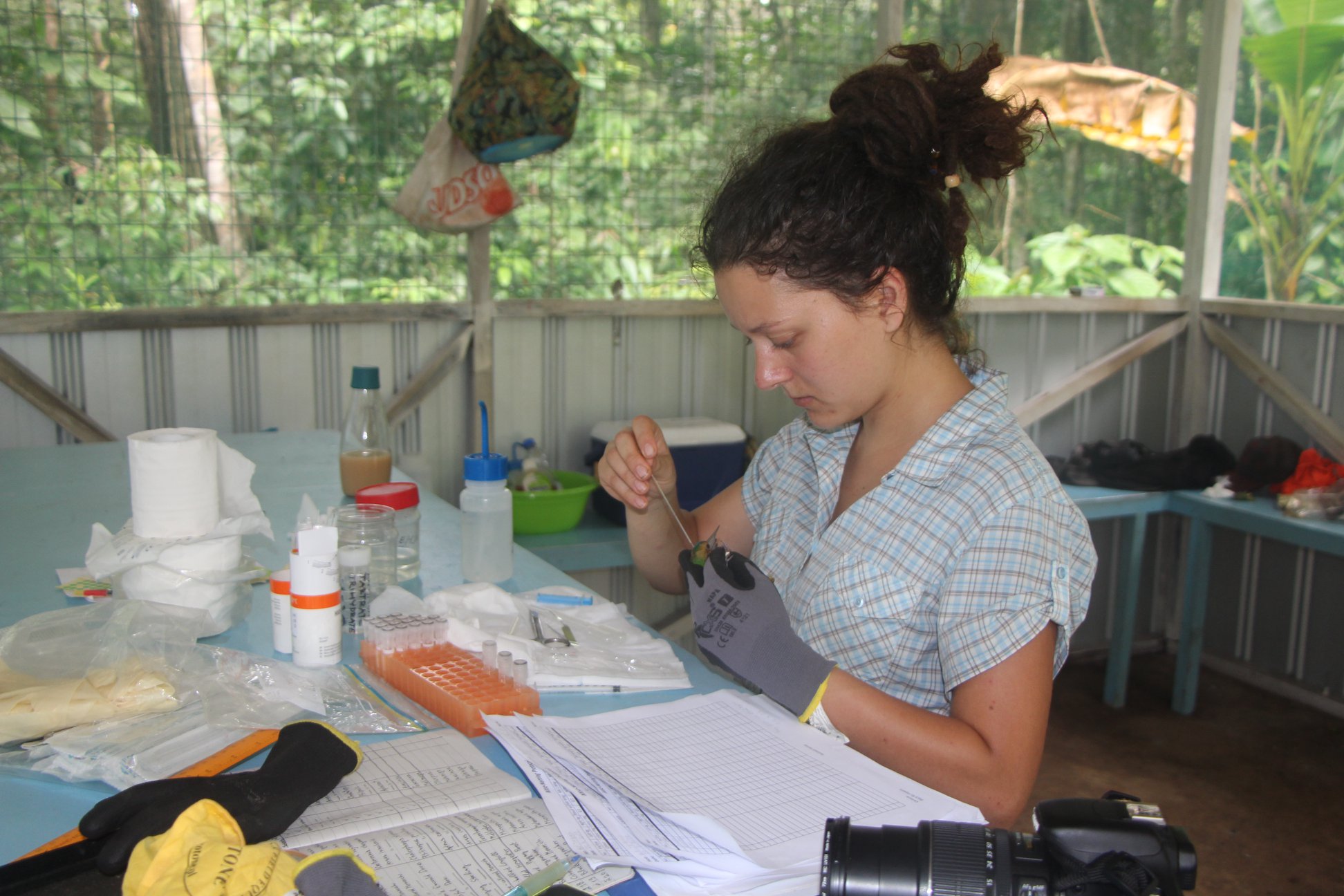 Katerina Puzejova spent one month in Papua New Guinea conducting her research for Master thesis. She surveyed vertical stratification of bird communities with help of Kakoba canopy crane. She surveyed bird’s feeding specialization and other aspects of their lives.
