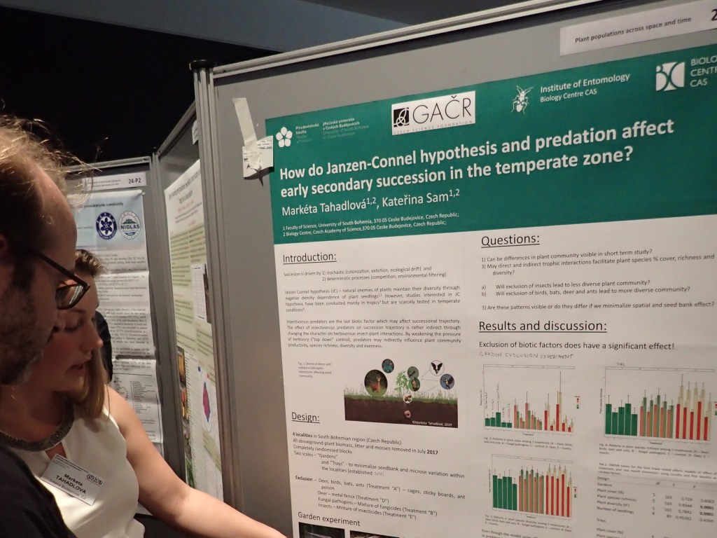 K. Sam and M. Tahadlova represented our team at 49th Annual Meeting of the Ecological Society of Germany, Austria and Switzerland in Münster. They presented three posters. Marketa presented the partial results of her succession experiment, while Katka represented the result of the exclosure experiments along the gradient and of the global meta-analysis on similar topic. This was also Marketa’s first international conference, and she was doing really well while explaining her work.