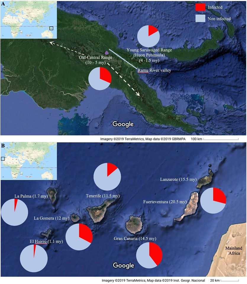 A new paper that is just published in Molecular Ecology, demonstrates that host colonisation histories and host- and-parasite community compositions are important drivers of blood parasite (Haemosporidian) prevalence patterns in bird communities of Papua New Guinea and the Canary Islands. The work was led by Kasun Bodawatta on the samples collected by Katerina Sam during her PhD back in 2010. The original molecular work and isolation were done in collaboration with Pavel Munclinger.