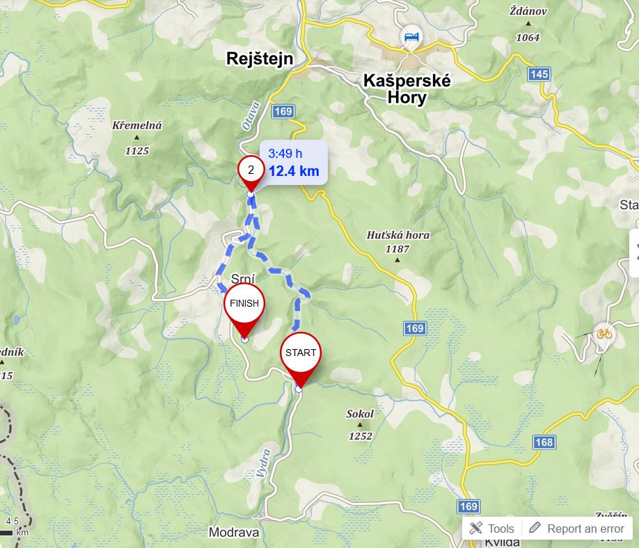On Sunday, the weather was suppose to be very bad. Therefore, we planned a short trip only around Soumarska slat (the one with wonderful mud), then to Stogrova hut and back along Prachatice golden rout. Surprisingly, the weather was the best of the three days. We thus enjoyed a nice walk and beautiful views and then we headed slowly back to Budejovice.