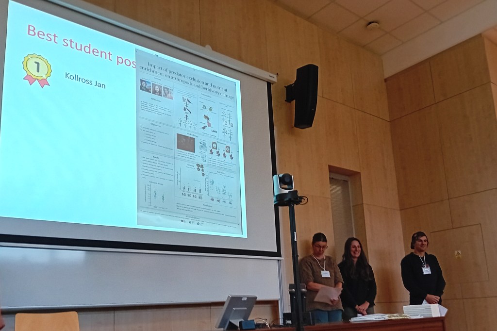 Kryštof Korejs presented talk on Functional diversity of frugivore and insectivore assemblages along the Mount Wilhelm elevational gradient. Jan Kollross had a poster on Impact of predator exclusion and nutrient enrichment on arthropods and herbivory damage, and won a first price for the best student poster with it. Jitka Jančúchová Lásková presented a work of the bachelor student Kristýna Kalamenová Trade-off between getting prey and being prey in spiders. Tereza Vlasatá showed in a poster that we run the Lifeplan project and some data which we are getting out of it. Finally, Katka Sam presented a talk: Vertebrates, more than ants, protect the forest trees from herbivores, and they do it better in temperate then in tropical forests.